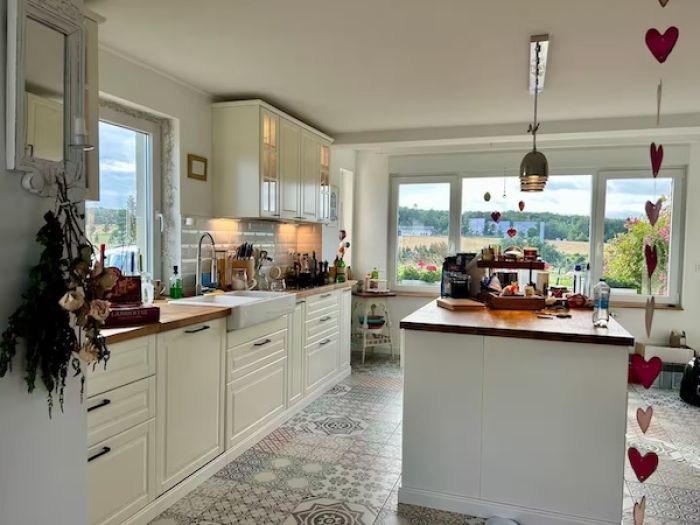 In dieser großzügigen Küche macht Kochen einfach Spaß.